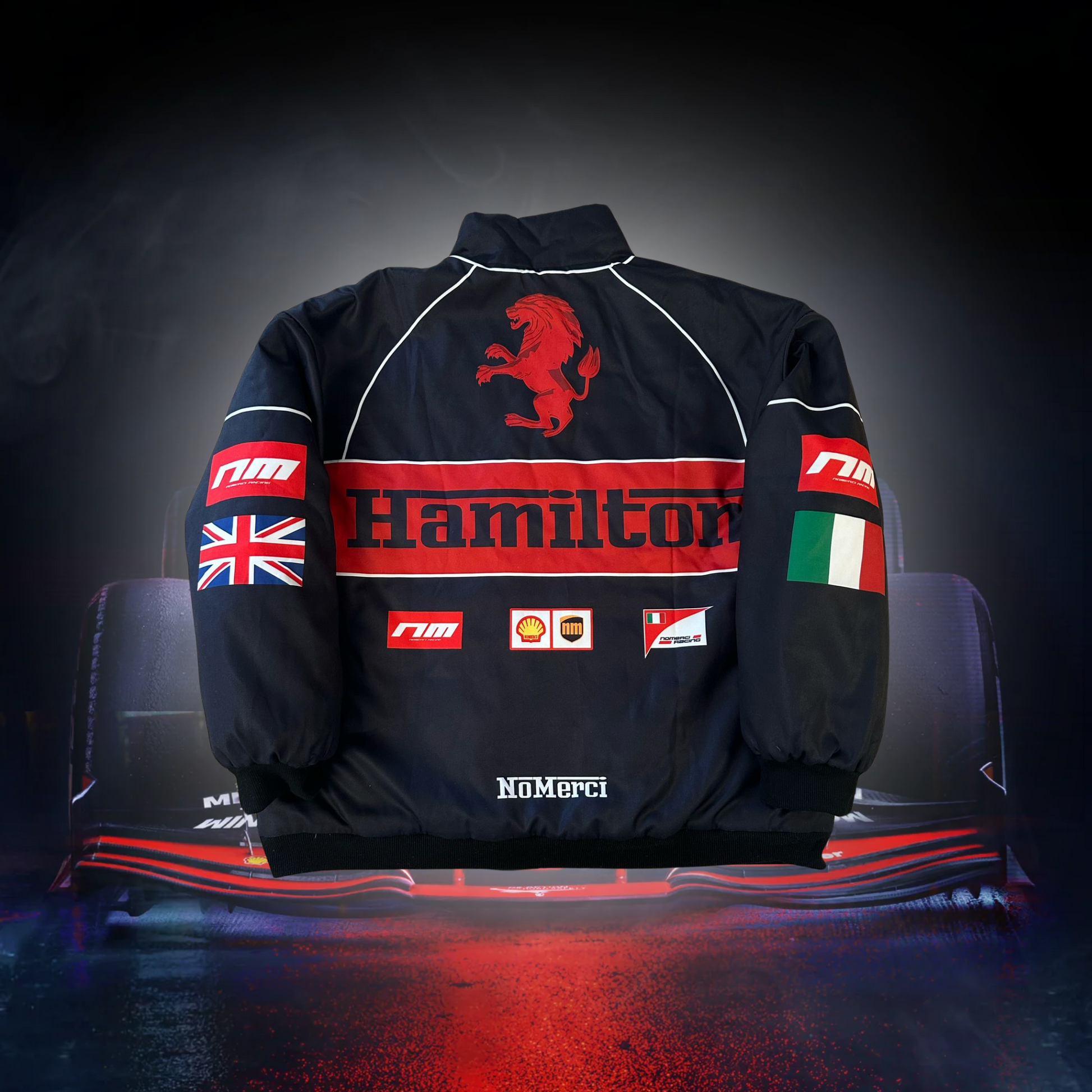 The NoMerci Hamilton F1 Jacket is a premium quilted racing-inspired piece celebrating a new era in motorsport. Limited stock, no restocks—secure yours before it’s gone.