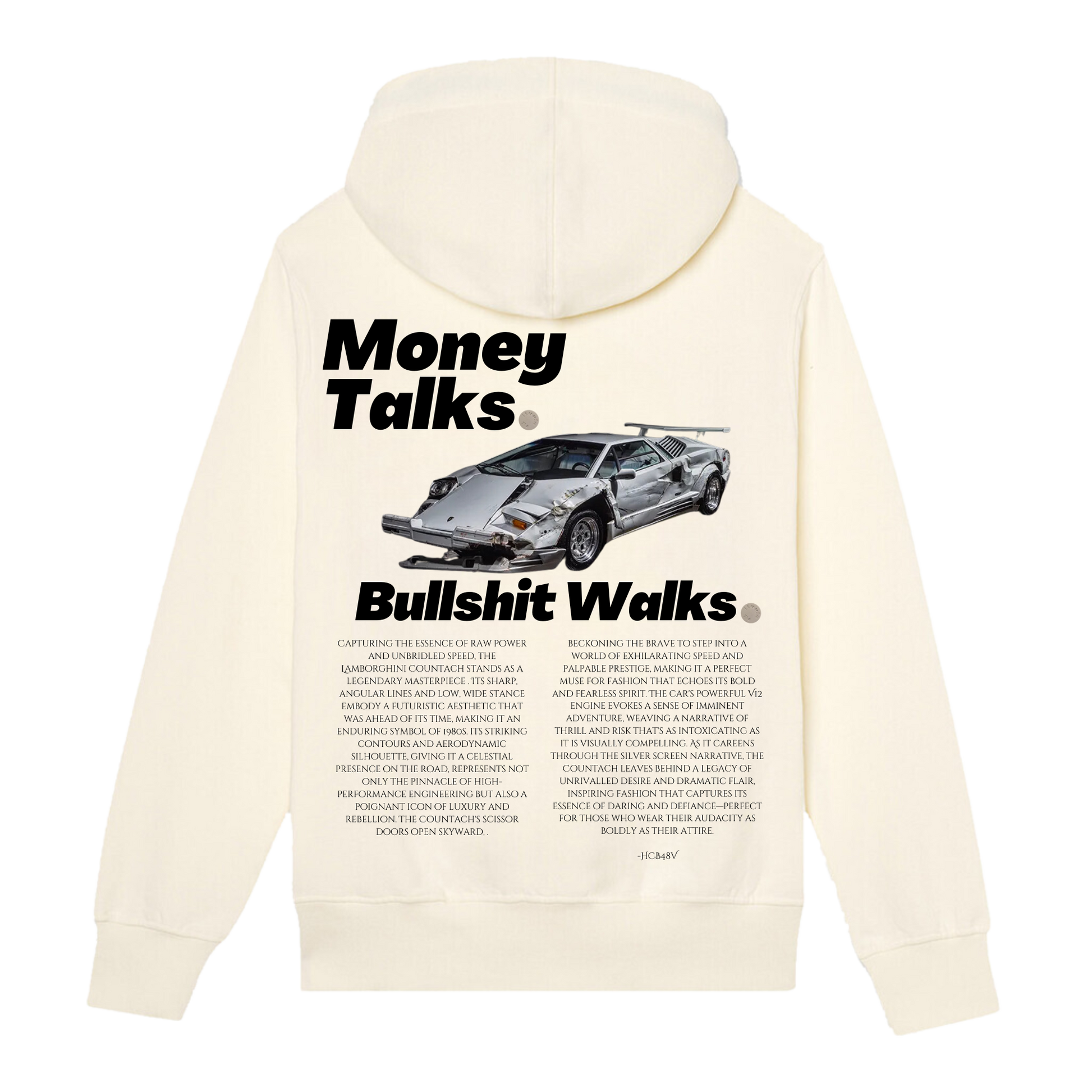 Unleash your inner rebel with the 100% cotton 380GSM Lamborghini Countach "Money Talks Bullshit Walks" Hoodie. Featuring the iconic Wolf of Wall Street crashed Countach, this hoodie is for those who appreciate the blend of raw power and audacious style. Make a statement wherever you go—because in the world of high stakes, money talks.